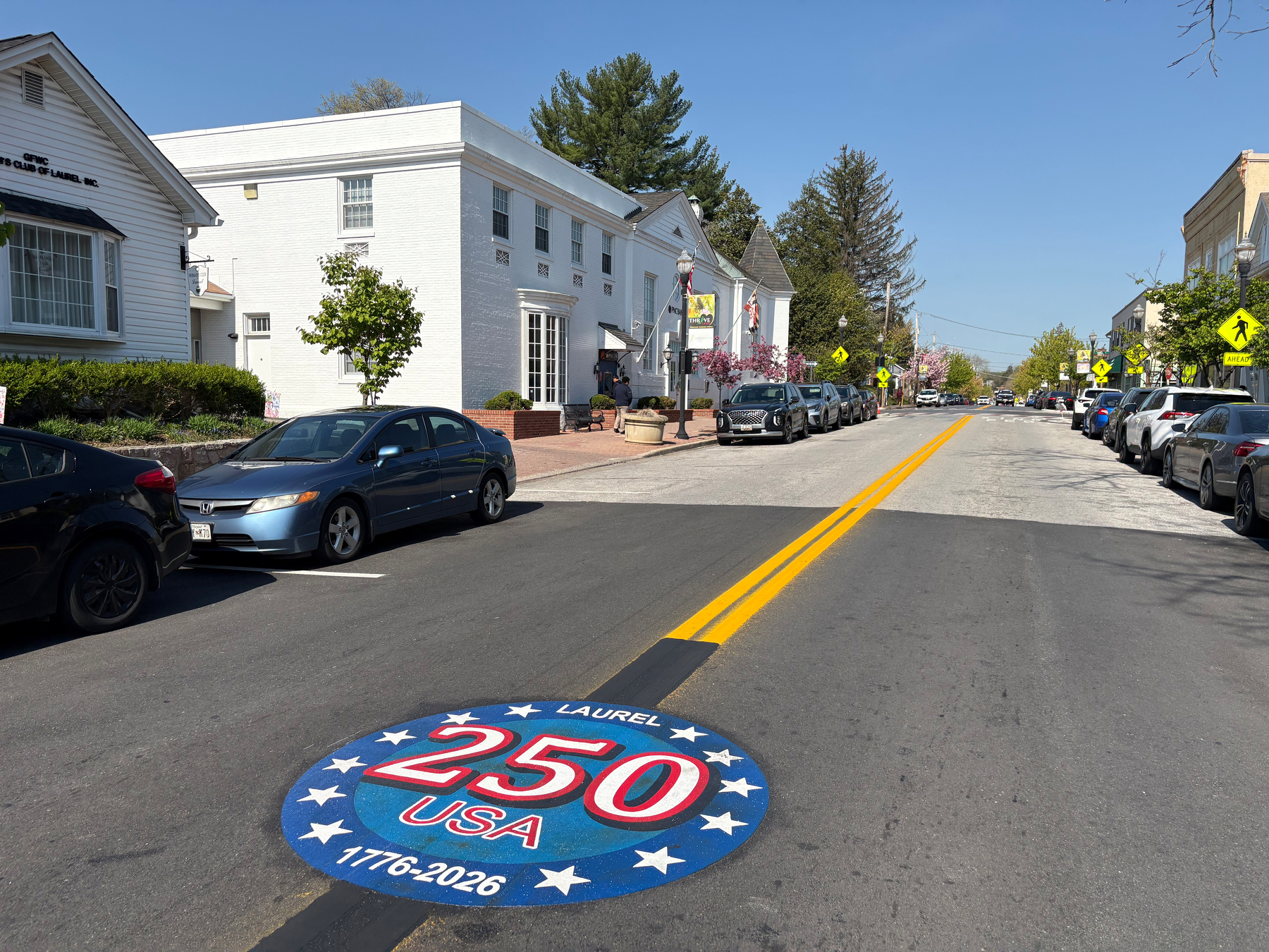 As I was out-and-about this morning, came across a cool sight –> A shiny new decal on Main Street as part of our nation’s 250th birthday celebration this year! 🥳